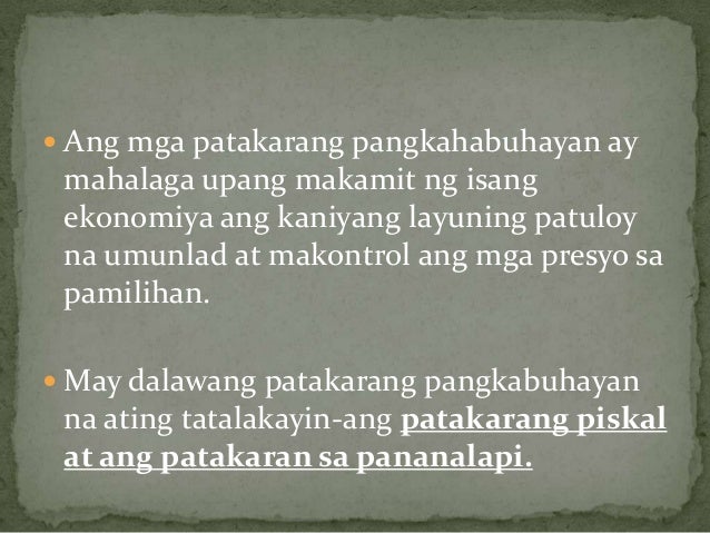 At para hindi tayo maapakan o maapi ng ibang tao. Ang pagbabayad ng buwis ay mahalaga sa mga Pilipino anu ang mga maaring mangyari kung maglakaroon ng deficit sa public revenue ang ating pamahalaan. Kailangang tangkilikin natin ang mga produktong Pilipino.